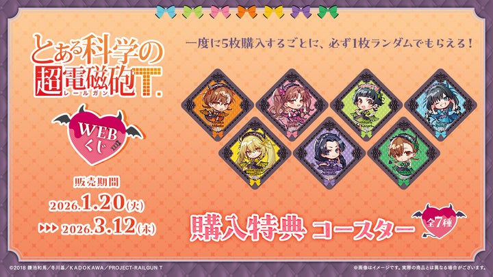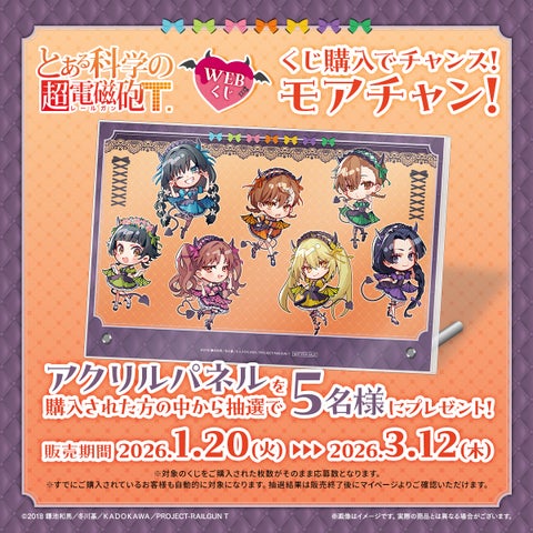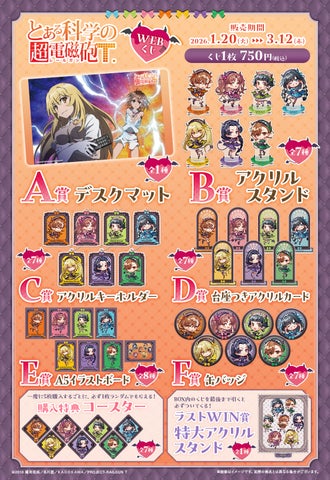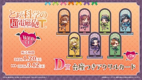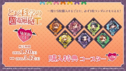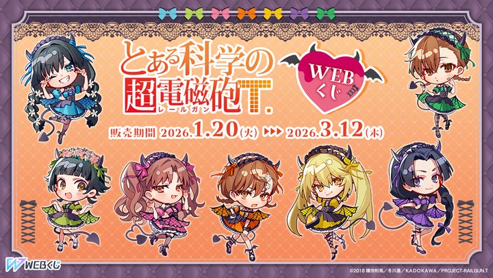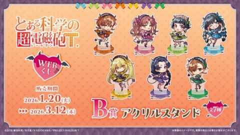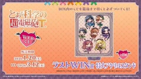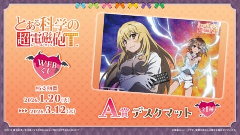 2026年1月20日(火)より、『とある科学の超電磁砲T』の描き起こしイラストを使用した【とある科学の超電磁砲WEBくじ】の販売が開始されました。小悪魔メイドになった美琴たちのグッズが多数ラインナップされています。