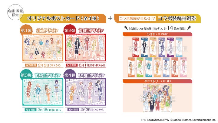 店舗の受付にご提示いただいた方に、コラボオリジナルデザインのポストカードや館内装飾が当たる抽選券をプレゼントいたします。