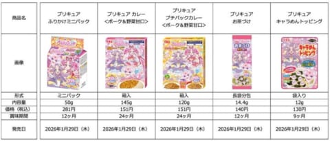 新番組「名探偵プリキュア!」の放送開始を記念して、丸美屋食品工業から5種類の新商品が2026年1月29日(木)に発売されます。お子様の食事時間を楽しく彩る、魅力的なラインナップです。