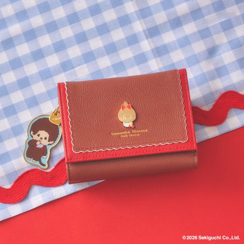 サマンサタバサプチチョイスと『モンチッチ』のコラボレーションアイテムは、レトロガーリーをイメージした赤のチェック柄とオリジナルのデザインが特徴です。お財布、ポーチ、チャーム、バッグなど、全8アイテムを展開します。