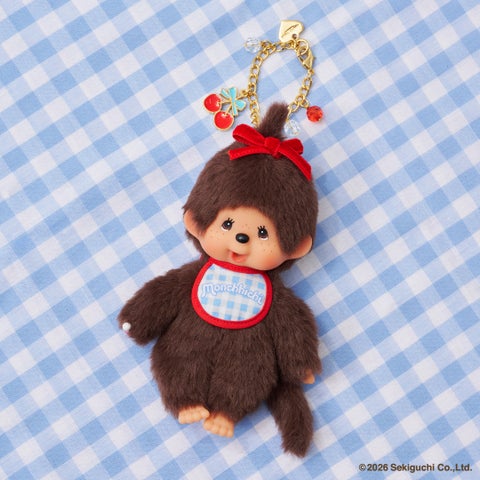 • 「モンチッチくん」と「モンチッチちゃん」が仲良く並び、ハートを持ったデザインが特徴です。チェーン部分にはチェリーやビーズを組み合わせた、カラフルで可愛らしいデザインで、バッグに付けることで華やかな印象を加えます。