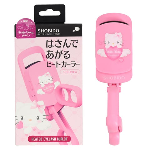 本商品は、粧美堂の「はさんであがるヒートカーラー」本体にキュートなハローキティを刻印した限定デザインです。一般的なカーラー形状で、指の力と熱のダブル効果によりまつげをしっかりホールドし、クルンと上向きのまつげをつくります。仕上がりを長時間キープできる点が特長です。