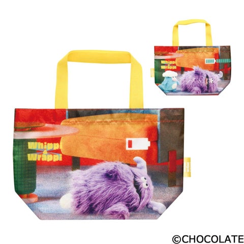 今回カプセルトイで登場するエコバッグには、ホイッピとラッピのシュールで愛らしい日常の様子が全面にプリントされています。
