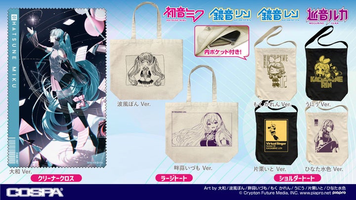 『初音ミク』『鏡音リン』『鏡音レン』『巡音ルカ』『MEIKO』『KAITO』の新作グッズがCOSPAから発売されます。これらのアイテムは、様々なクリエイターたちによるデザインが施されたアパレルやグッズとしてラインナップしています。