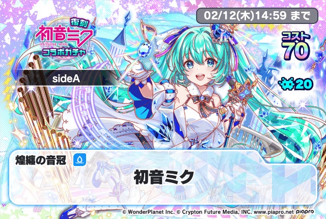 2026年1月22日(木)15:00から2月12日(木)14:59まで、「復刻初音ミクコラボガチャsideA」および「復刻初音ミクコラボガチャsideB」を実施します。過去に登場した初音ミクコラボのユニットを再び獲得できる機会です。