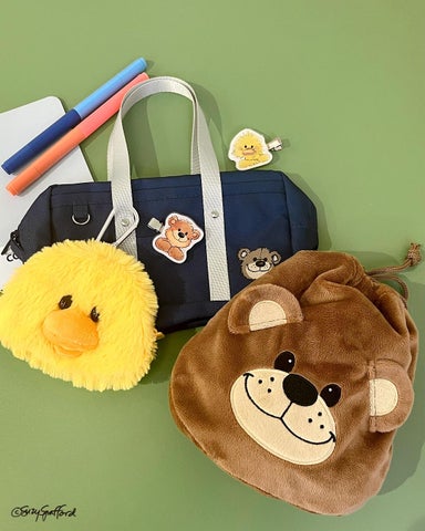 - スクールバッグ風ポーチ: 刺繍がアクセントになったデザインが魅力のポーチです。