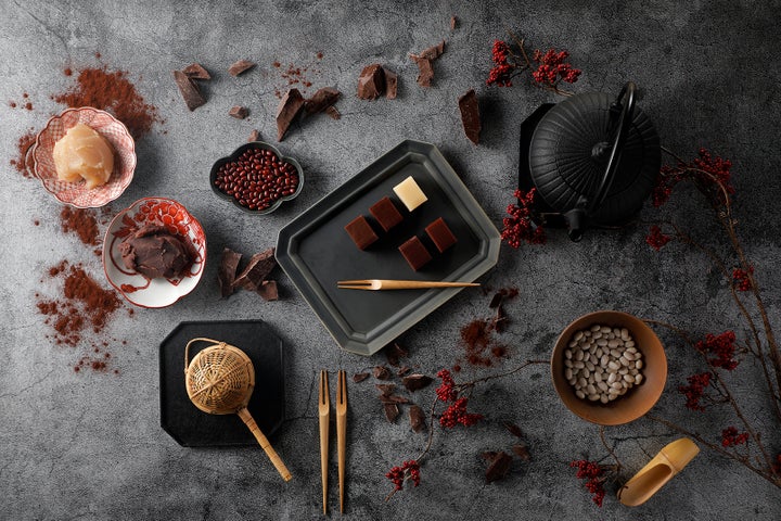 塩瀬伝統の羊羹に、サステナブルプログラム「カカオトレース」認証のチョコレートを配合しました。厳選された北海道音更産エリモショウズ小豆とザラメ糖を使用した塩瀬自慢の羊羹と、芳醇な香りのチョコレートが織りなす、和菓子ならではの瑞々しさと濃厚なチョコの味わいを一度にお楽しみいただけます。