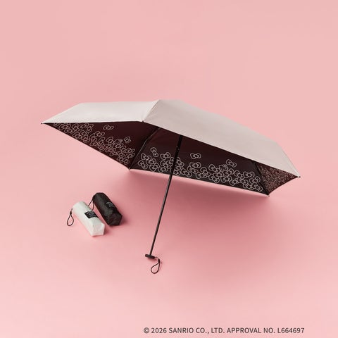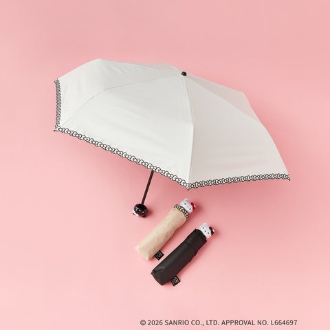 ハローキティのポイントデザインが施された晴雨兼用折りたたみ傘です。