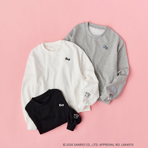 ハローキティのリボンモチーフやハローキティ本体の刺繍が施された裏毛プルオーバーです。