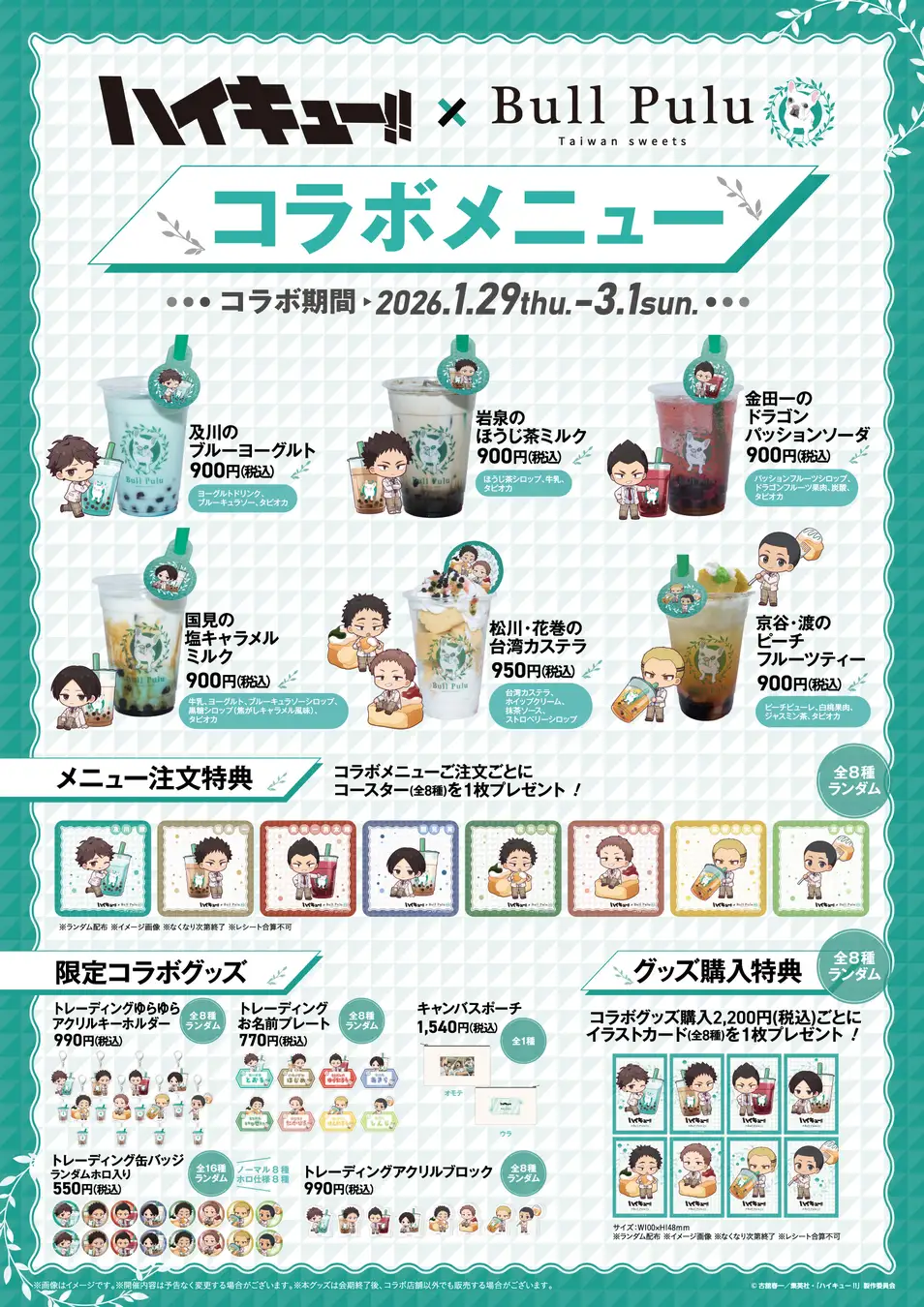 ハイキュー!!×BullPulu コラボがキター!タピオカ&グッズで青葉城西を応援