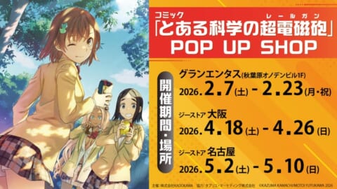 コミック『とある科学の超電磁砲』のPOP UP SHOPが、2026年2月より東京、大阪、名古屋で開催します。限定グッズや会場特典、オンライン販売情報をまとめました。