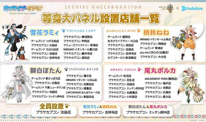 等身大パネルはカプコンの直営各店舗でも設置します。設置内容は各店舗にご確認ください。