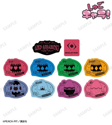 日奈森 あむの名前、「UNLOCK MY HEART.」のイメージマーク、ラン、ミキ、スゥ、ダイヤ、ヨル、キセキ、イル、エルのしゅごたまのモチーフをフレークシールに仕上げました。身の回りのものをデコレーションしたり、プレゼントや手紙に貼るなど、様々な用途で楽しめます。