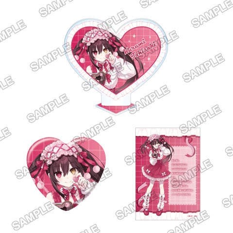- ハートアクリルスタンド、ハート缶バッジ、狂三からのコメントカードの計3点がセットです。
