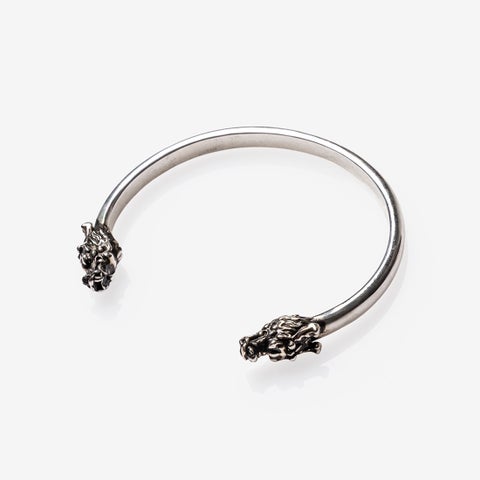 「伝説の龍を腕元に――桐生一馬の魂をあしらったバングル」として登場するこのバングルは、OX JEWELRyのアイコン的バングルに龍の装飾を特注で施したものです。程よい太さと厚さで、どのようなコーディネートにもなじむベーシックなデザインに仕上げています。