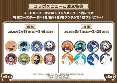 コラボメニュー1品ごとにコースターをランダムで1枚プレゼントします。