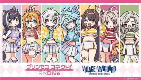 アニメRPG『プリンセスコネクト!Re:Dive』とヴィレッジヴァンガードによるスペシャルコラボグッズが、新規描き起こしイラストで登場します。チアガール衣装の可愛らしいキャラクターたちが魅力です。