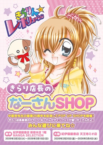 中原杏先生の画業25周年を記念した『きらりん☆レボリューション』のポップアップショップ「きらり店長のなーさんSHOP」は、東京と大阪の紀伊國屋書店にて巡回開催します。
