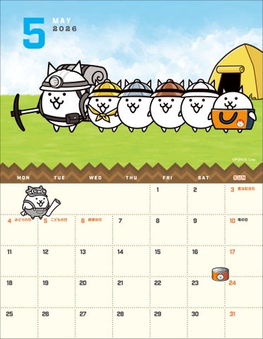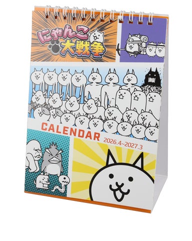 2026年4月始まりの『にゃんこ大戦争』卓上カレンダーで、毎日をにゃんこたちと楽しく彩りましょう。限定キャラクタープレゼントも要チェックです。詳細は「にゃんこ大商店オンライン」をご確認ください。