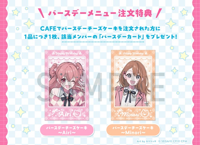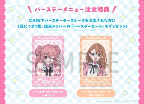 • CAFEでバースデーチーズケーキを1品注文するごとに、該当メンバーの「バースデーカード」を1枚プレゼントします。
