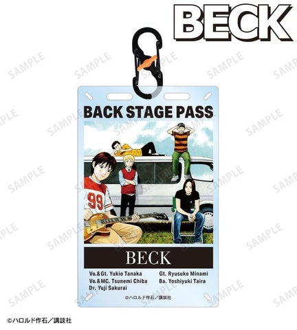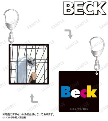 ペイジ、ベック、田中幸雄、南 竜介、千葉 恒美、平 義行、桜井 裕志のイラスト、BECKの描き起こしロゴを両面で楽しめるアクリルキーホルダーです。カバンや小物につけて、キャラクターとの日常を楽しめます。