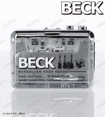 楽器の描き起こしモチーフと作品ロゴをデザインしたカセットプレーヤーです。オートリバース機能によりカセットのA面とB面を連続再生できます。乾電池での使用が可能で、場所を選ばずに音楽を楽しめます。USBケーブルでPCと接続すれば、お手持ちのカセットテープの音源をMP3へ変換することも可能です。