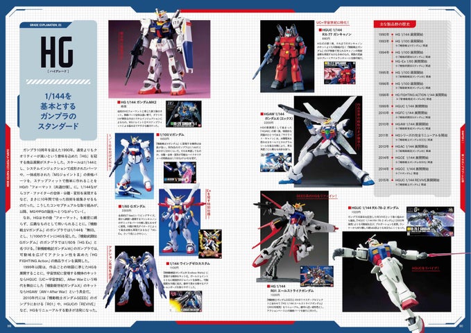 1980年~、2002年~、2020年~、2025年以降という4つの章に分け、それぞれの扉ページには、28年間にわたりプラモデル開発に携わってきたBANDAI SPIRITS担当者の逸話も掲載。激レアアイテムを含む45年の歴史をまとめた序章の年表も収録し、ガンプラファンにとって必読の内容です。