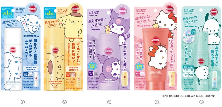 日やけ止めスプレー累計売上第1位※1を誇るブランドを代表する商品を含む、全5品目がサンリオキャラクターズの特別デザインで登場します。※1 インテージSRI+日やけ止めスプレー(セルフ・薬系)市場2022年8月〜2025年5月の累計販売金額(ブランド計)