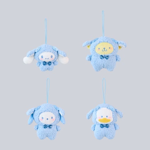 ヒツジの耳と角が付いたおそろいのずきんがポイントのぬいぐるみです。ホワイトデーにぴったりなホワイト×水色のコーディネートで、プレゼントにも喜ばれます。サイズは15cm(シナモロールのみ12cm)で、以下の4種をラインアップします。