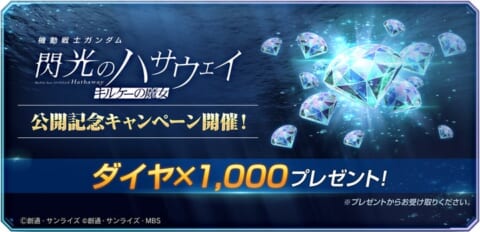 『機動戦士ガンダム 閃光のハサウェイ キルケーの魔女』の公開を記念し、ダイヤ1,000個を全ユーザーにプレゼントします。