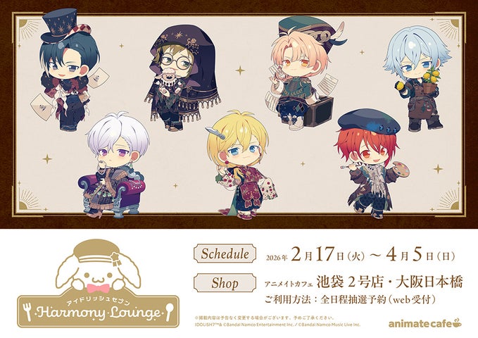 『アイドリッシュセブン』のコラボレーションカフェ「アイドリッシュセブン Harmony Lounge」の第2弾「Group Anniversary 2024」が、2026年2月17日より開催されます。