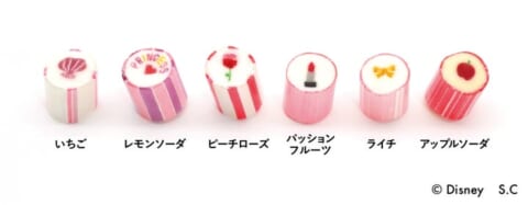 2023年に発売され人気を集めた、ディズニープリンセスをテーマにしたプレミアムキャンディが復刻します。「白雪姫」のリンゴ柄や「ベル」のバラの絵柄をイメージした、柔らかく上品な色合いと絵柄が特徴です。フレーバーは、「ベル」のバラをイメージしたピーチローズなど、物語性を感じさせる組み合わせを採用。また、「PRINCESS」の文字入りキャンディは、光にかざすと文字や絵柄が鮮明に浮かび上がる仕掛けを施し、職人の技術と遊び心が詰まった一品です。