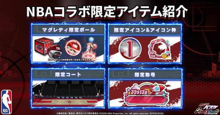 株式会社ファイブクロスは、『黒子のバスケ Street Rivals』(黒バスSR)にて、北アメリカのプロバスケットボールリーグ「National Basketball Association(NBA)」のレジェンド選手とのコラボレーションを2026年2月4日(水)より実施します。