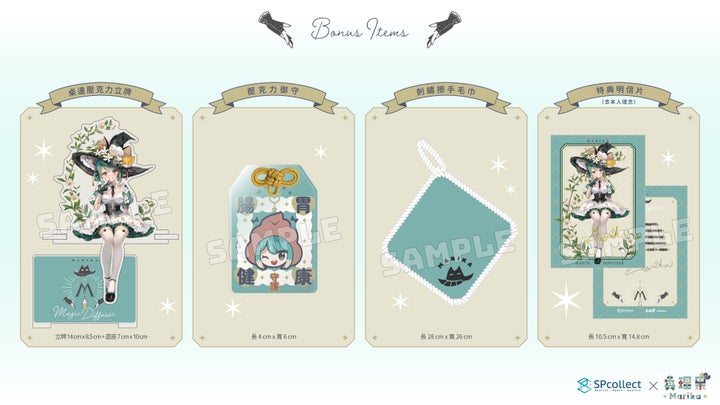 限定特典付きのスペシャルセットも用意されています。台湾の人気イラストレーターSay HANa林花氏による新キービジュアルを使用した描き下ろしアクリルスタンドをはじめ、真理果Marika本人執筆のメッセージ入りポストカード、刺繍入りハンドタオル、アクリルお守りが含まれる充実したラインナップです。