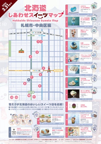 道内各地のスイーツ店とコラボレーションする企画「北海道しあわせスイーツマップ」を1月9日(金)より実施中です。札幌市内の13店、小樽市内の2店、函館市内の4店、標茶町内の1店を加えた計20店舗が参加します。各店舗で税込み1,000円以上のお会計をした方にコースター(全7種・ランダム)をプレゼントし、一部店舗では『雪ミク』のイラスト入りピックが付いたコラボメニューも提供します。コラボレーション期間は3月31日(火)までで、コースターやコラボメニューは店舗ごとになくなり次第終了です。