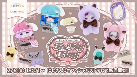 「にじいろクローゼット To My Tiny」グッズは、にじさんじオフィシャルストアにて2026年2月6日(金)18時00分から販売を開始します。多種多様なVTuberが所属する「にじさんじプロジェクト」発の新グッズです。