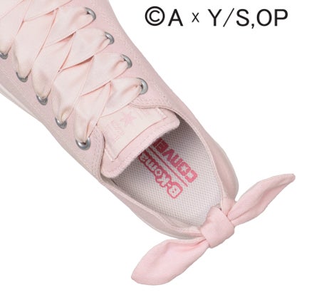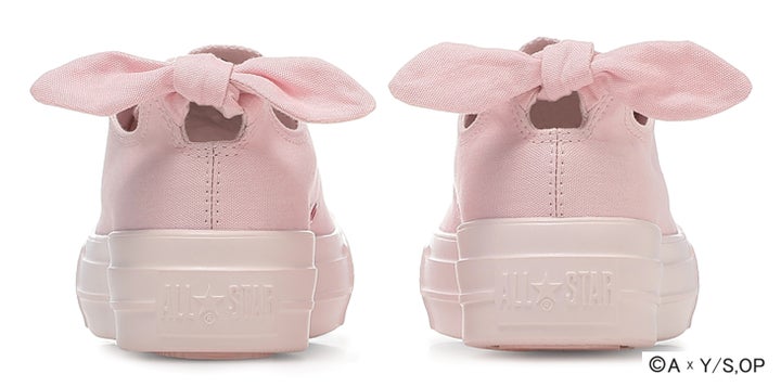 天真爛漫な「ルビー」をイメージし、かかとにはアイドル衣装のリボン、ピンクのサテンシューレースで華やかさを表現。