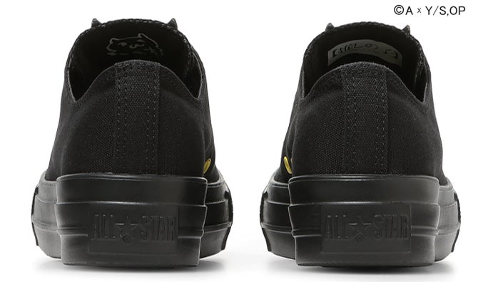 厚底仕様の「ALL STAR LIGHT PLTS」をベースに、「B小町」のルビー、有馬かな、MEMちょ、それぞれのキャラクター性を象徴するデザインが採用されています。