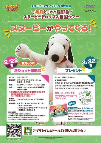 株式会社カプコンが配信するパズルアプリ『スヌーピードロップス』は、スヌーピーと会えるグリーティングイベントを毎月開催します。2026年2月は、スヌーピータウンショップ名古屋店にて開催が決定しました。