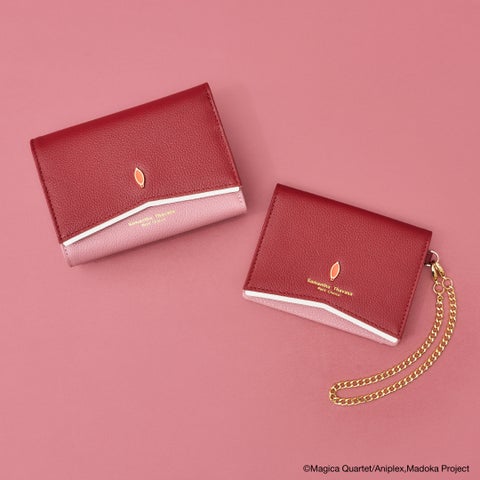 折財布のフロントフラップは佐倉杏子の衣装をモチーフにしたデザインです。