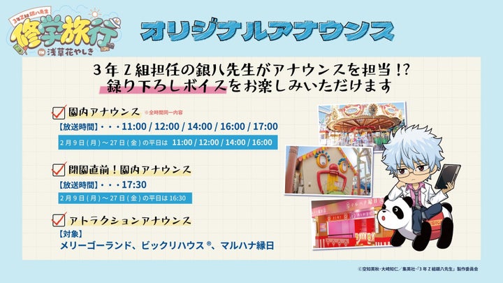 TVアニメ『3年Z組銀八先生』と浅草花やしきの特別なコラボイベントをぜひお楽しみください。