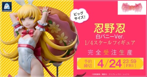 『忍野忍 白バニーVer. 1/4スケールフィギュア』は、本日公開されたA・DIMENSION公式ECサイトのほか、全国のホビー系ショップおよびホビー系ECショップにて予約が可能です。