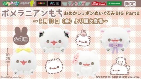 株式会社イオンファンタジーは、人気キャラクター『ポメラニアンもち』のプライズ景品第二弾「おめかしリボンぬいぐるみBIG Part2」を、2026年2月13日よりモーリーファンタジーなどで順次展開します。