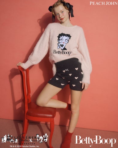 トップスにベティー ブープ™を大きくあしらったニットパジャマもラインナップに加わります。PEACH JOHNの定番素材である「ホイップリー」を使用しており、ホイップクリームのように柔らかな肌ざわりとあたたかさを実現しました。