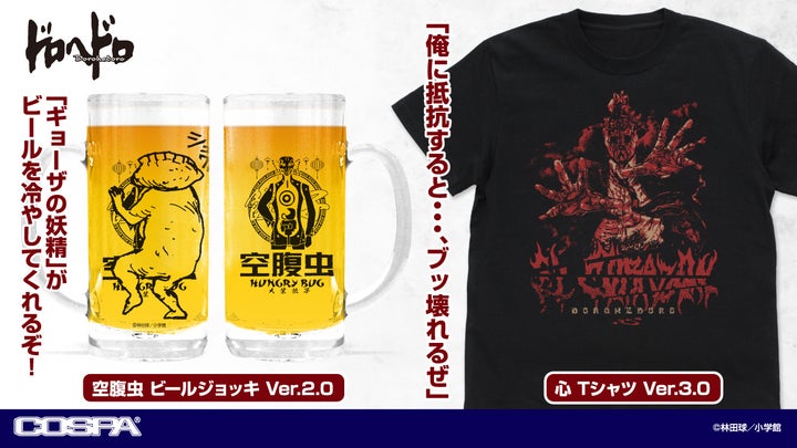 原作版『ドロヘドロ』の新作グッズ「空腹虫 ビールジョッキ Ver.2.0」と「心 Tシャツ Ver.3.0」は、通販を含むコスパオフィシャルショップにて予約を受付中です。