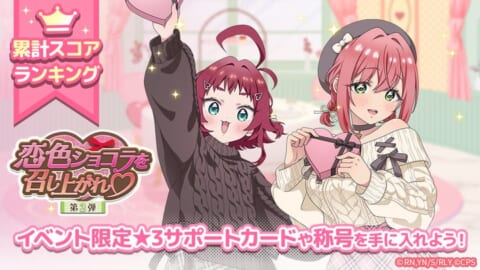 本日2026年2月9日(月)より、イベント「恋色ショコラを召し上がれ♡ 第2弾」が開催されます。イベントマップに挑戦してポイントを集め、ポイントガチャを引くことで、イベント限定の★3サポートカード「まあ、飲めば分かるのだ!」や、★3キャラクター「楠莉の薬」など、貴重なアイテムが手に入ります。繰り返しプレイして、豪華報酬の獲得を目指しましょう。