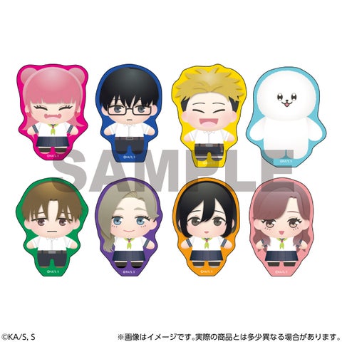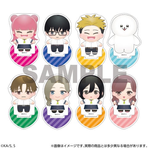 『正反対な君と僕』のキャラクター、鈴木、谷、山田、イエティ、平、東、西、本田の全8種がラインナップされたトレーディングアクリルスタンドです。