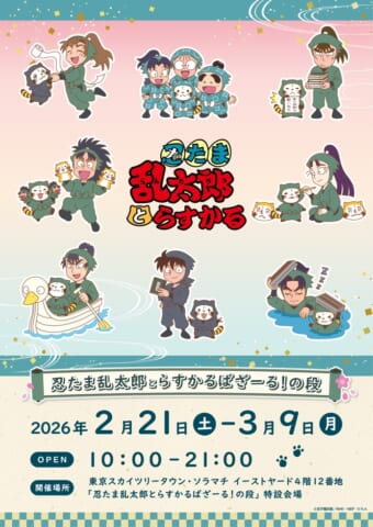 TVアニメ『忍たま乱太郎』と世界名作劇場『ラスカル』のコラボレーションが決定しました。2026年2月21日より東京ソラマチにてポップアップショップが開催されます。