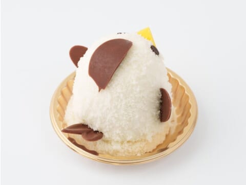 仙台限定ぴよりんは、名古屋コーチンの卵を使ったロイヤルミルクティー味の濃厚なプリンを、ホワイトチョコレート味のババロアで包み、白いスポンジのクラムをまとわせた特別な一品です。頭や羽まで「イクスカすずめ」風に仕上げた、ここでしか出会えないデザインです。
