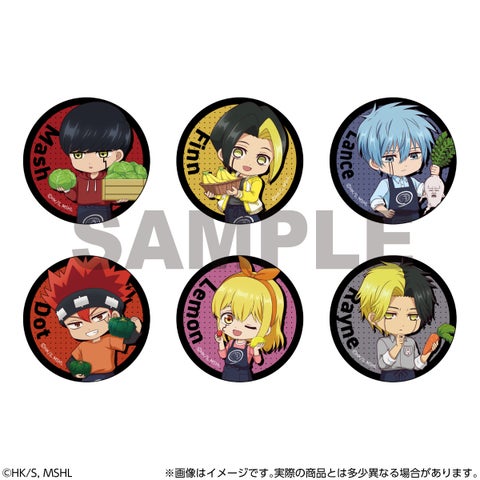 キャラクターのデフォルメイラストがデザインされたトレーディング缶バッジです。